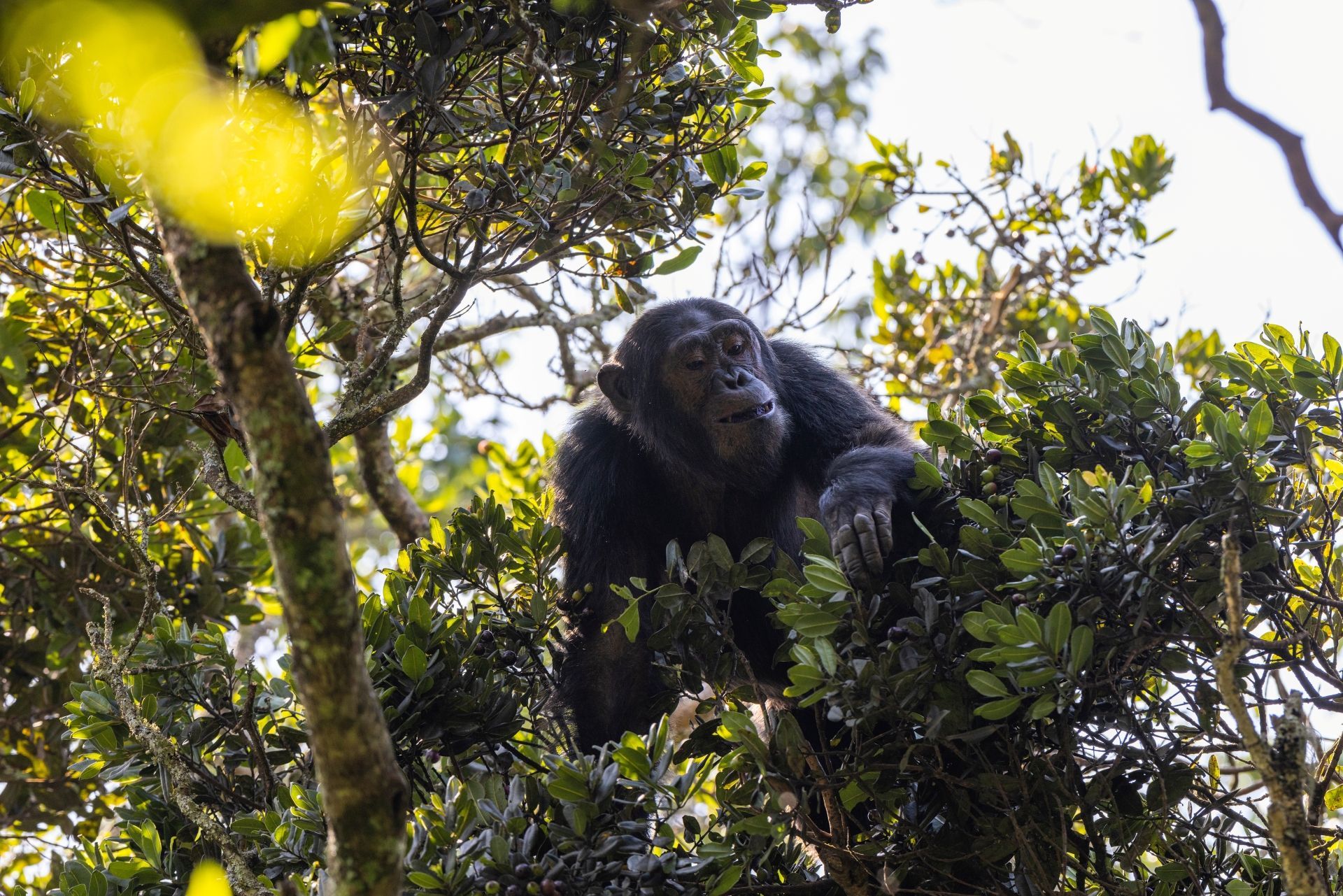 Unlike gorillas, chimpanzees move quickly through the forest and are often heard before they are seen. Their calls echo through the trees and guide trackers towards the troop. Once located, the group may be feeding, grooming or travelling through the canopy with remarkable agility.